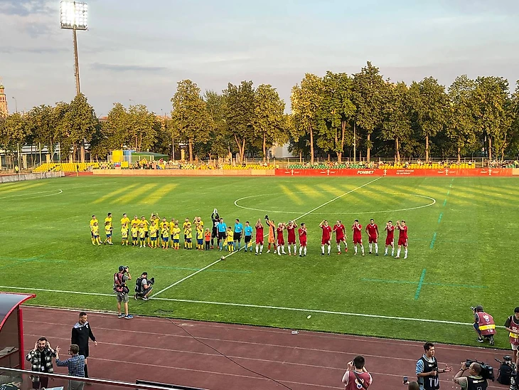 Стартовый состав "Амкала" слегка удивил, обычно команда из Москвы не играет с двумя нападающими, но сегодня первый профессиональный матч клуба в котором может произойти всё.