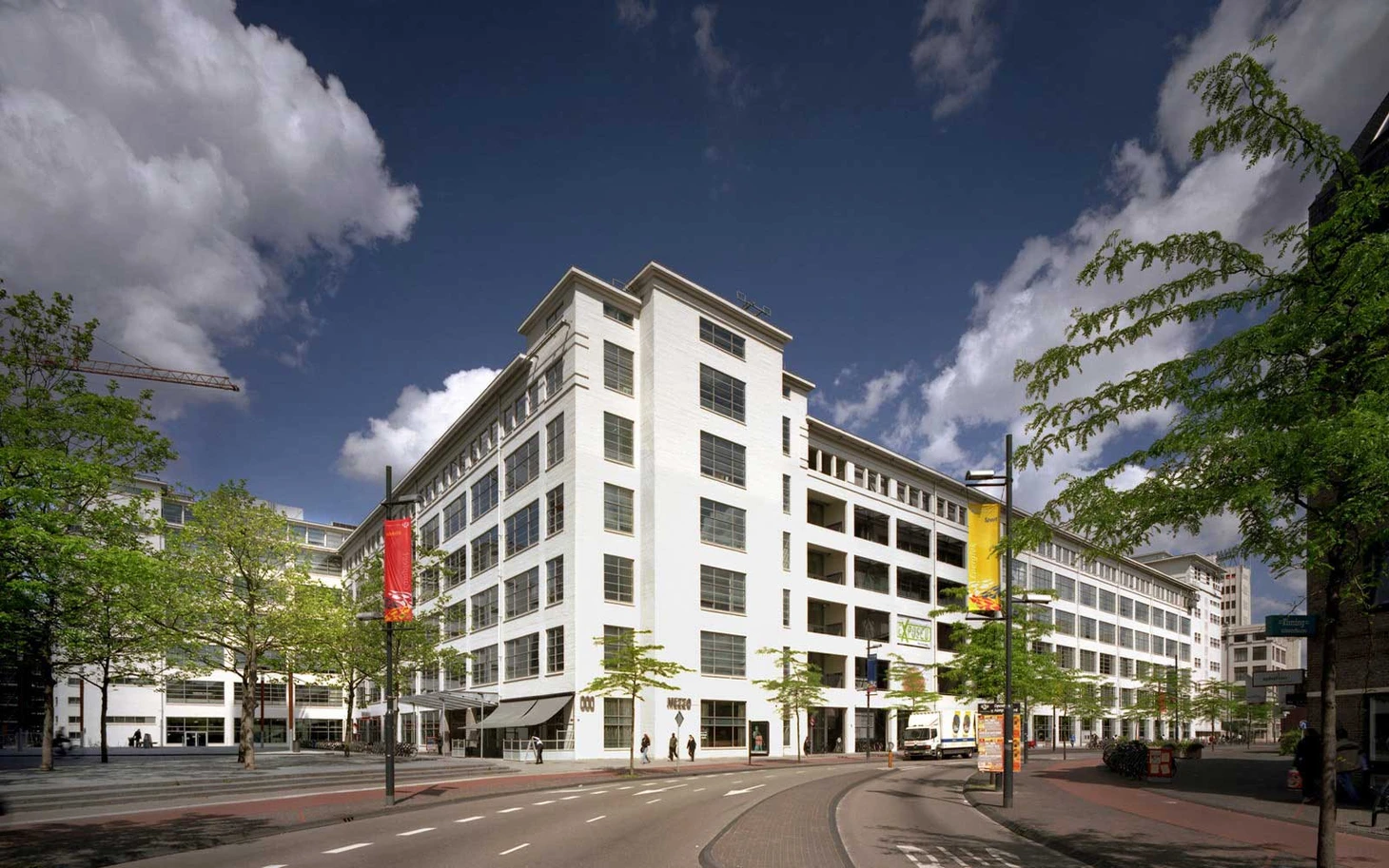 Неподалёку от двух первых находится очередное примечательное городское здание: это башня Света — Лихтторен. Именно здесь, на верхних этажах, Филипс тестировали свои лампочки на долговечность. Свет горел здесь без выходных и круглосуточно, за что здание и получило своё имя. А соседняя постройка носит название «Белая дама» — Витте Даме. Она была выстроена в 1931 г. в стиле, получившем название «новая объективность». Сегодня в здании размещены публичная библиотека и академия дизайна.