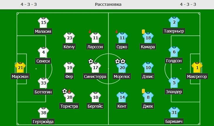 Ларссон – 5,5. Средний матч, был активен, но на результат не повлиял.