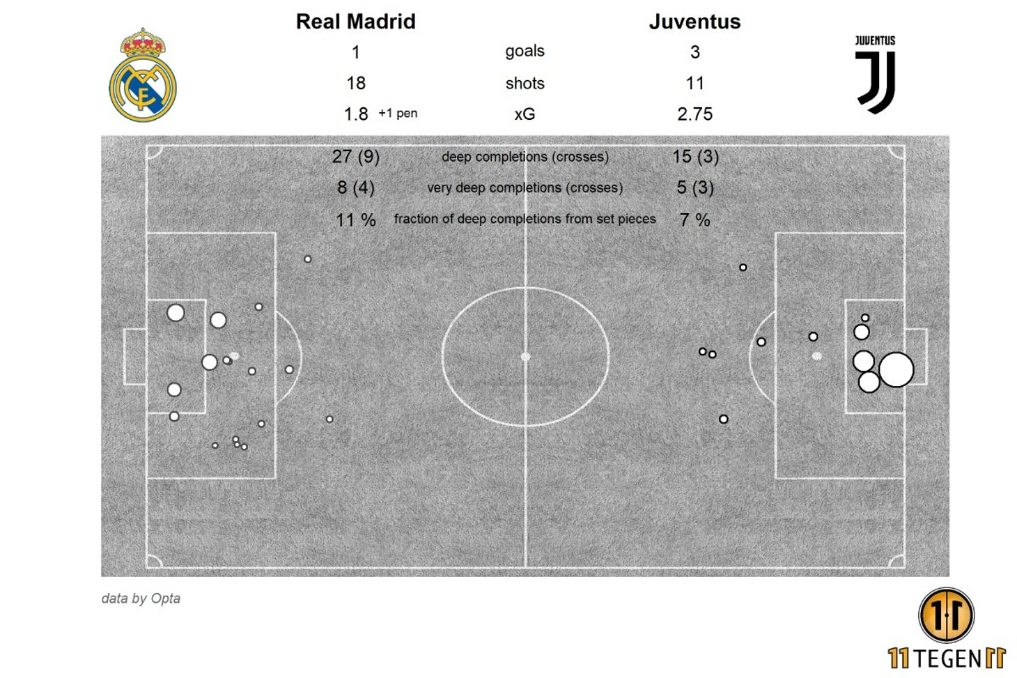 «Ювентус» достаточно легко проходил середину поля соперника. Полузащита «Реала» – его сильнейшая сторона, но игру, особенно в обороне, она провалила. Фундаментальный для «Мадрида» Каземиро, выдавший нетипично для себя слабую игру, служит главным показателем этого. Бразилец всего один раз, из трёх попыток, успешно отобрал мяч и не сделал ни одного перехвата. Первый гол «Юве», по большей части, его вина. Каземиро вроде бы мяч перехватил, но сильно отпустил его от себя, а затем слишком резко выпрыгнул в отбор, дав легко себя обыграть Дугласу Косте. Стоявший рядом Марсело, видимо, был уверен в надёжности действий опорника, и, находясь в полупозиции, не успел его подстраховать, отойдя чуть глубже. Замена Каземиро уже после первого тайма логична.
