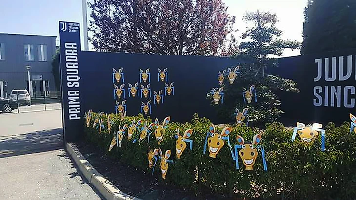 Южных болельщиков уже распирает от нетерпения, поэтому они обвешали спортивный центр в Виново, где тренируется «Ювентус», изображениями ослика.