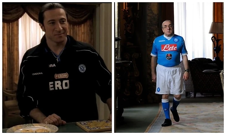 Сцены из культового «Клана Сопрано» и нашумевшего «Молодого папы». Известный прием всех режиссеров: хочешь выделить неаполитанца – покажи его любовь к «Наполи»