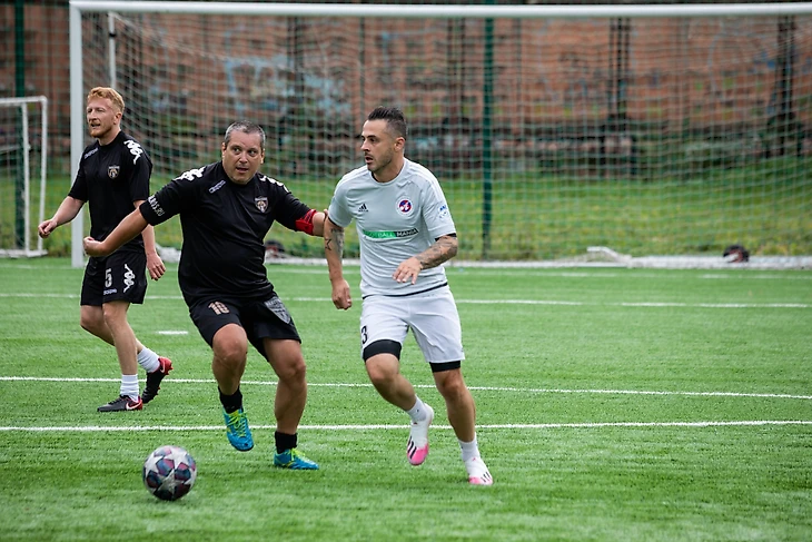 ФК «Артист» по традиции усилился ветеранами российского футбола 90-х-2000-х. В центре поля разгонять атаки вышел легенда «Спартака» Валерий Шмаров. Чуть выше в атаке расположился бывший игрок «Локомотива» Олег Елышев, а в обороне - легенда «Локо» Юрий Дроздов. Команда старалась комбинировать. А вот «Налетчики» старались проскакивать центр поля в пару пасов, нахрапом. И примерно после первых пятнадцати минут приглядываний друг к другу (играли 2 тайма по 35) эта тактика потихоньку начала давать свои плоды. В ворота «Артиста» залетел первый гол (ассист на счету ШеFFа), второй (забил Сам), третий. Оппоненты, рокеры то бишь, били много, но то мимо, то в игроков обороны, и результативно ответили до перерыва лишь раз - Елышев ухнул в самую «девятку».