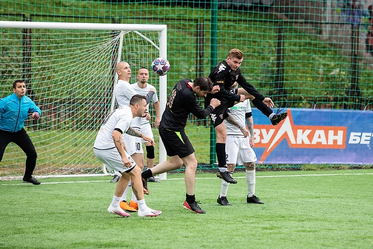 С одной стороны - ФК «Артист», в нынешнем составе которой зажигают музыканты популярных рок-группы Casual, «Слот», Louna. С другой - ФК «Налетчики», проект отца-основателя группы Bad Balance Влада Валова (он же ШеFF).