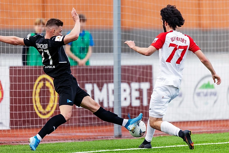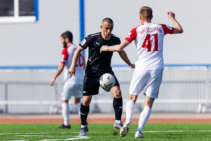 В опорной зоне расположился Масленников (2001 г.р). Кстати, парня в «Шиннике» заметил сам Хасанби Эдуардович Биджиев, который и пригласил его в команду из Нальчика. Немаловажно, что Игорь – лимитчик. В командах мэтра опорник обладал самой главной ролью: через него Лобановский доносил все свои идеи до других футболистов.