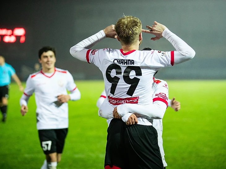На острие атаки – Руслан Суанов (1997 г.р) и Александр Бутенко (1998 г.р). И опять «Машук»? Ну парни все-таки оформили выход в «серебро». Хоть схематически Суанов исполяет роль выдвинутого форварда, а Бутенко – в оттяжке, ситуативно все может быть наоборот: Руслан часто оттягивается в глубину для развития атак и участия в циркуляции мяча, а в это время его позицию занимает Александр. Тут можно только похвалить Артура Умамудиновича Садирова и его тренерскую мысль, которая принесла 14 голов в лице Суанова и Бутенко. Эти два игрока идеально дополняют друг друга и этим самым компенсируют слабые стороны. Взрывная скорость и завершение Бутенко + дриблинг и игра на втором этаже Суанова = разрыв шаблонов в «серебре».