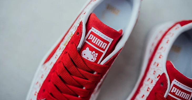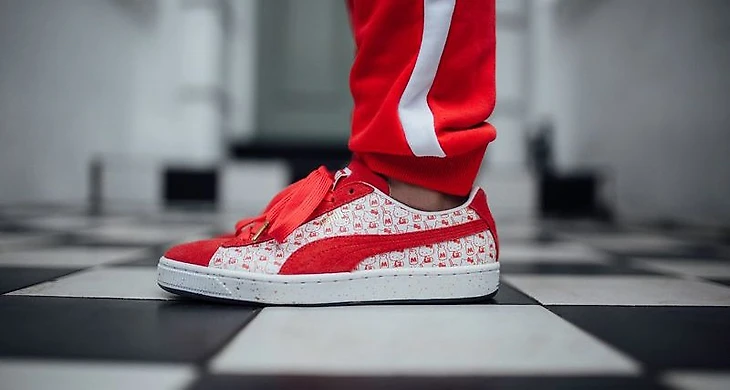 Для прекрасных дам Puma выпустила Suede Classic совместно с известным брендом Hello Kitty. Кроссовки исполнены в красно-белом стиле с замшевым верхом и украшены классическим принтом Hello Kitty. При этом фирменный японский бренд гармонично расположен на язычке вместе с лого Puma.