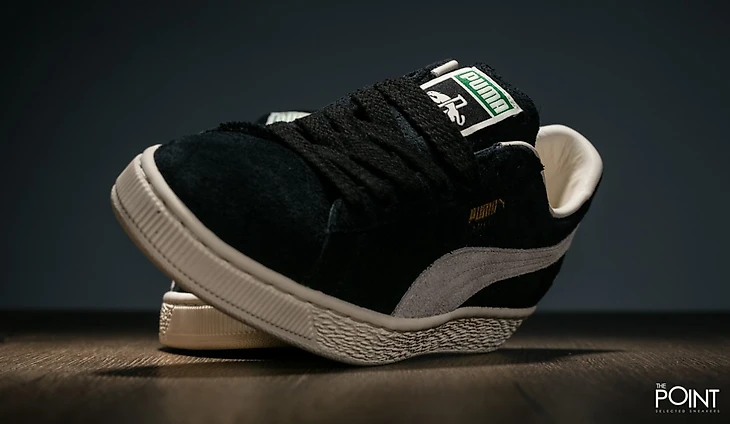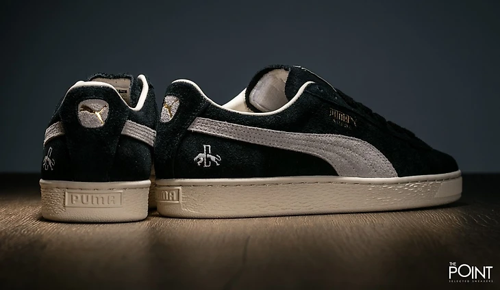 Появившись в 1968 году Suede можно сказать, изменили мир кроссовок. Заменив кожу и текстиль на мягкую замшу. Кроссовки в честь Рудольфа Дасслера сделаны из классической черной замши. На задней боковой части изображен первый логотип бренда Puma, прыгающая через букву D пума.