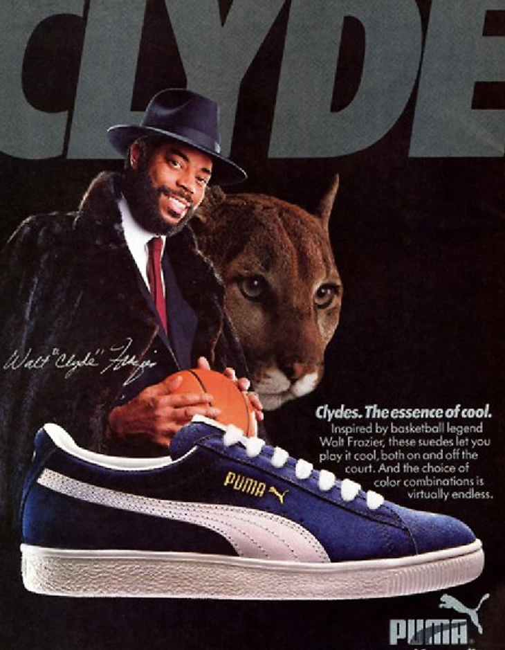 В 70-х благодаря сотрудничеству Puma с легендарным баскетболистом Уолтом Фрейзером модель Suede вновь набирает популярность. Именно для Фрейзера были выпущены специальные кроссовки Puma Suede Clyde. Он был настоящей иконой баскетбола и стиля, поэтому уже в первый год было продано несколько миллионов пар.