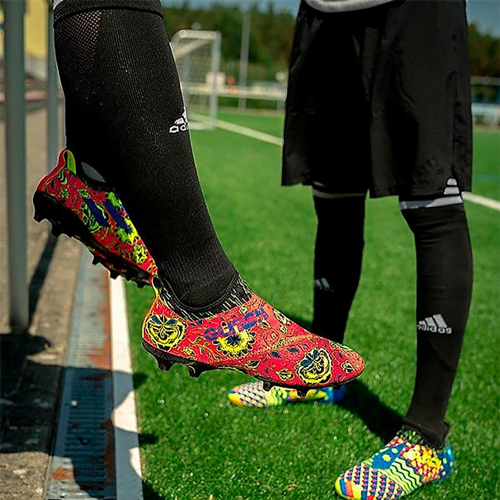Это – adidas Glitch. Их делают не только игрокам. Так, для фанатов Франции, Германии и Англии выпущены модели с флагами сборной и уникальными графическими элементами каждой страны: лев (Англия), королевская лилия (один из символов Франции) и орлиные когти (на гербе Германии орел).