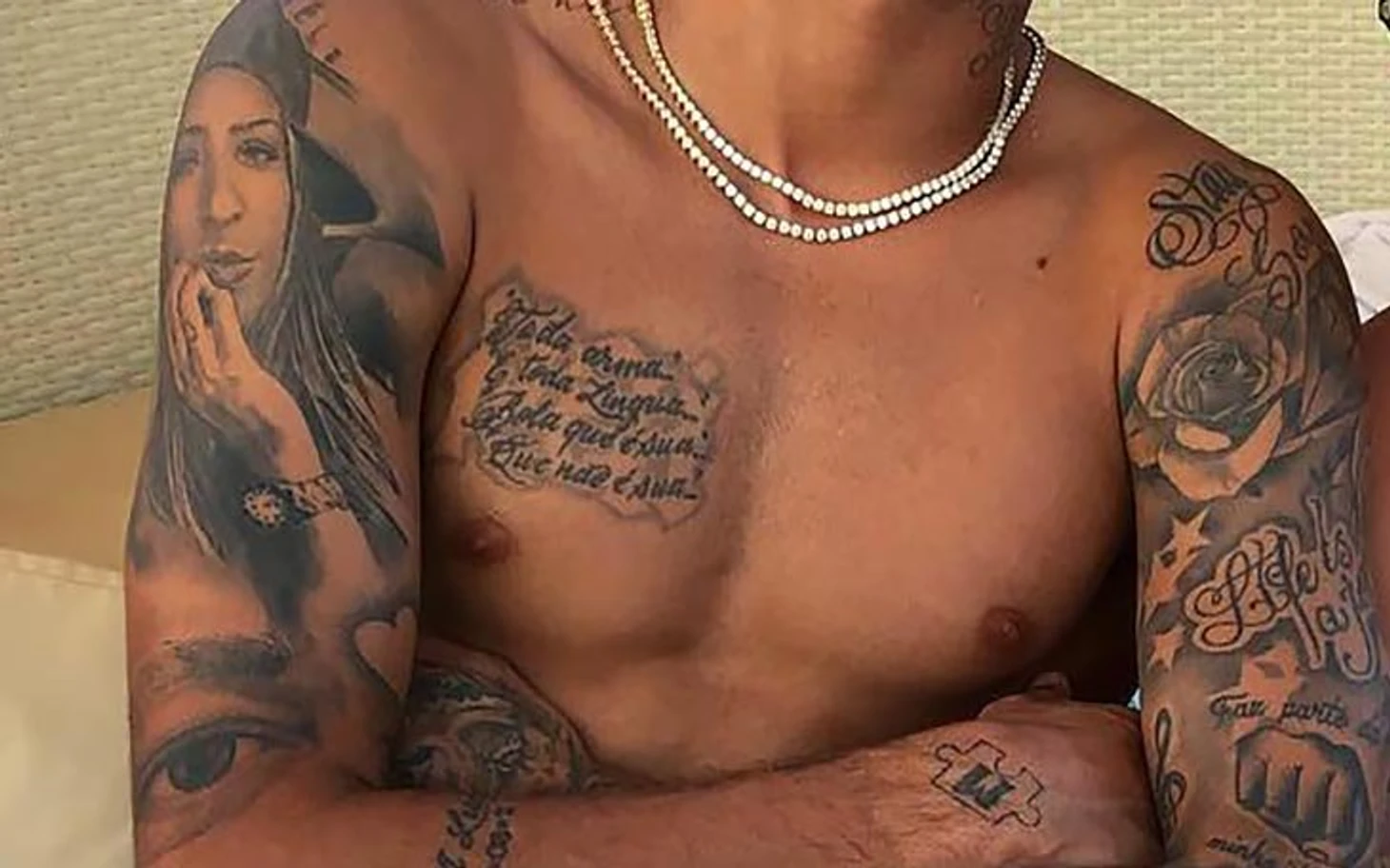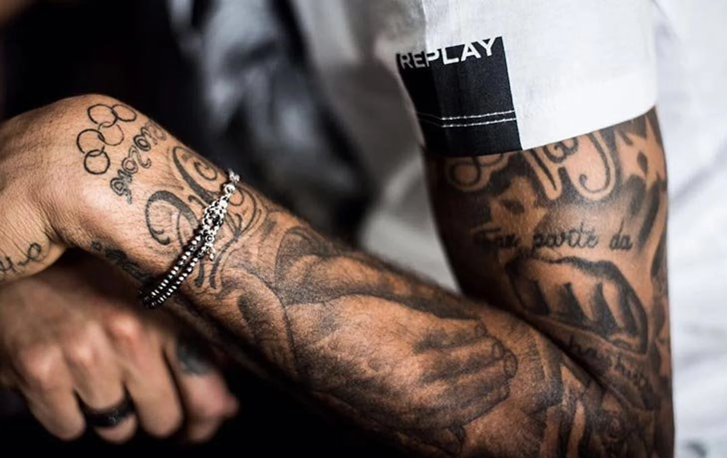 После перехода в «Барселону» в 2013-м бразильский нападающий столкнулся с волной хейта и сделал копию тату Рианны «Shhh…» на левой руке. «Я использую эту татуировку, когда у меня проблемы и чтобы люди заткнулись», – прокомментировал бразилец.
