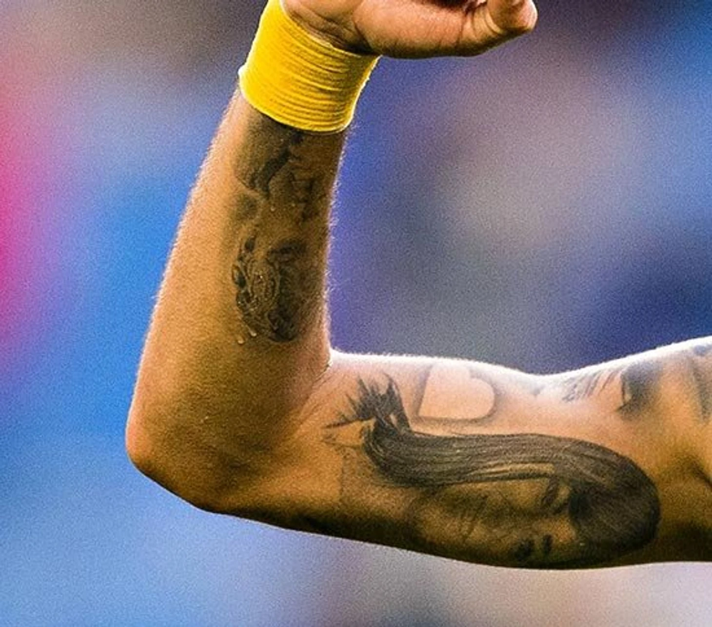 Вся правая рука бразильского форварда тоже посвящена его семье. На плече изображен портрет сестры Рафаэллы. «Эту фотографию она выложила в интернете, не зная, что я хочу сделать такую татуировку», – рассказал бразильский нападающий.