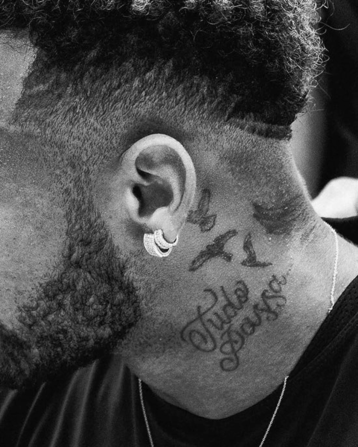 «Эта фраза многое говорит обо мне. Время, когда ты счастлив, уходит, плохие моменты проходят. Я должен наслаждаться этими моментами столько, сколько смогу», – рассказал про тату на шее бразилец.