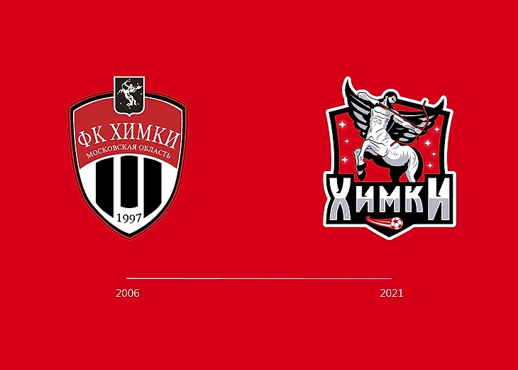 Действующий логотип ФК «Химки» был придуман в 2006 году после того, как на старой эмблеме использовали футбольный мяч со звездами с лого Лиги чемпионов. УЕФА потребовала убрать звездный мяч, поскольку это зарегистрированный знак организации. Новую эмблему пришлось согласовывать с руководством Московской области, в итоге получился унылый логотип, украшенный старомодным шрифтом с засечками.