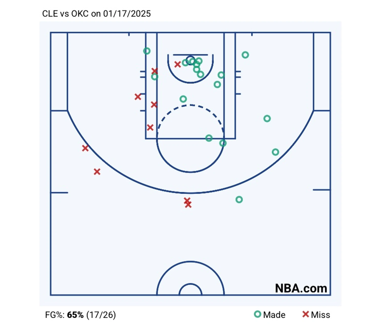 Зарубились на славу. В упорнейшем поединке сильнее оказался «Кливленд» благодаря доминации двух бигменов. Даже выпавший из ритма Донован Митчелл не испортил картины, и усилий Шэя Гилджес-Александера оказалось мало.