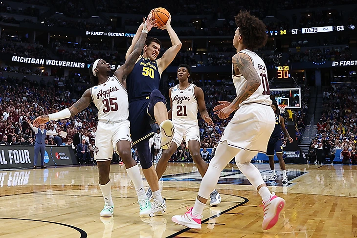 К концу встречи упорная игра превратилась в разнос. Благодаря Голдину, его не менее габаритному товарищу Вольфу и помощнику со скамейки Гэйлу (26 очков – рекорд карьеры), университет Мичигана совершил рывок 15:2 и оторвался на 9 очков за 3 с половиной до сирены. А дальнейшая игра фолов и непроходимая защита обеспечили победу над Техасом – 91:79.