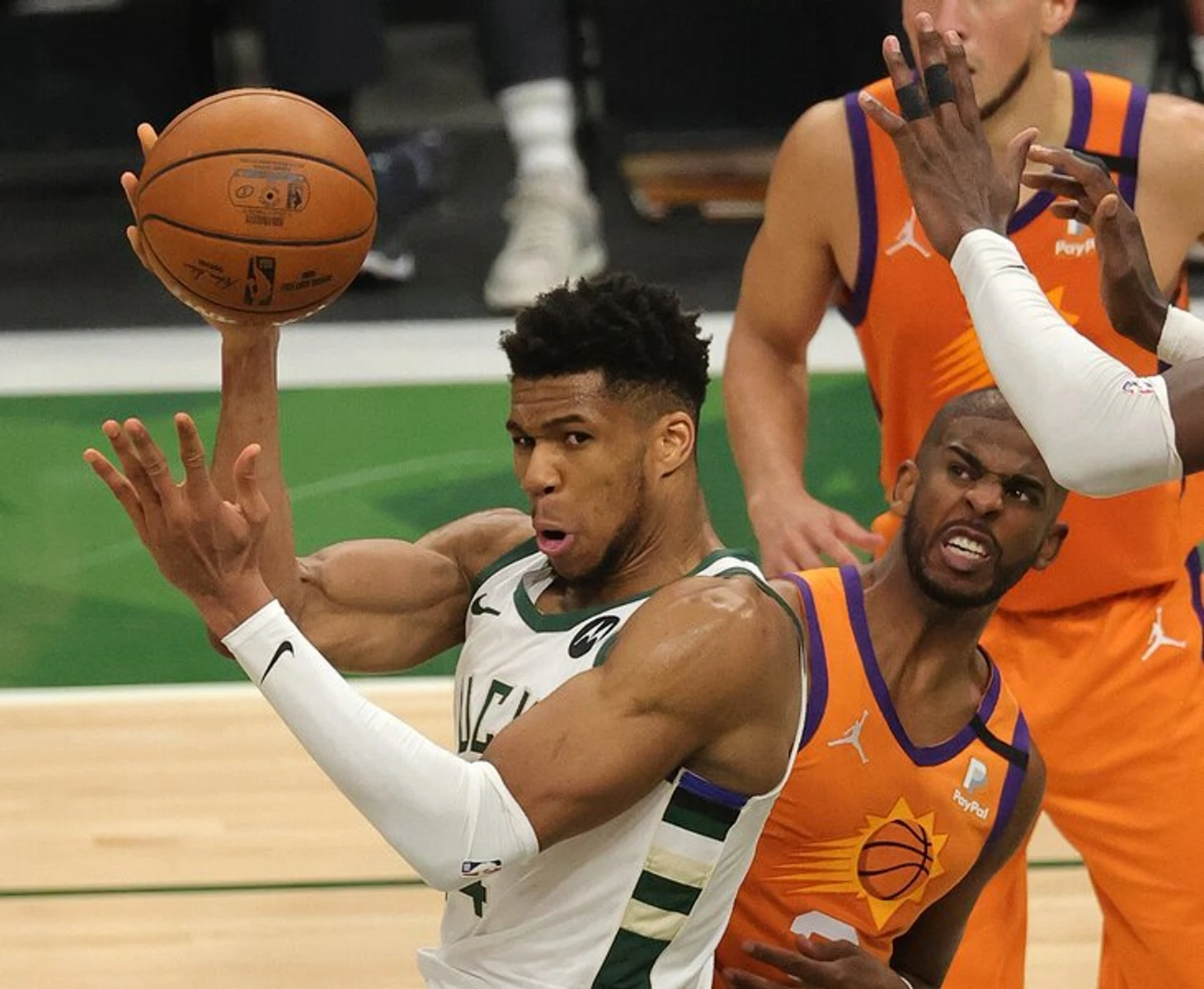 И Девин Букер, и сам ветеран играли через боль, а доминацию Янниса Адетокумбо было не остановить. 35,2 очка, 13,2 подбора, 5 передач, 1,8 блок-шотов и 61,8% попаданий с игры. В «краске» он набирал 17,2 очка за матч, бигмены «Санз» ничего не могли поделать.