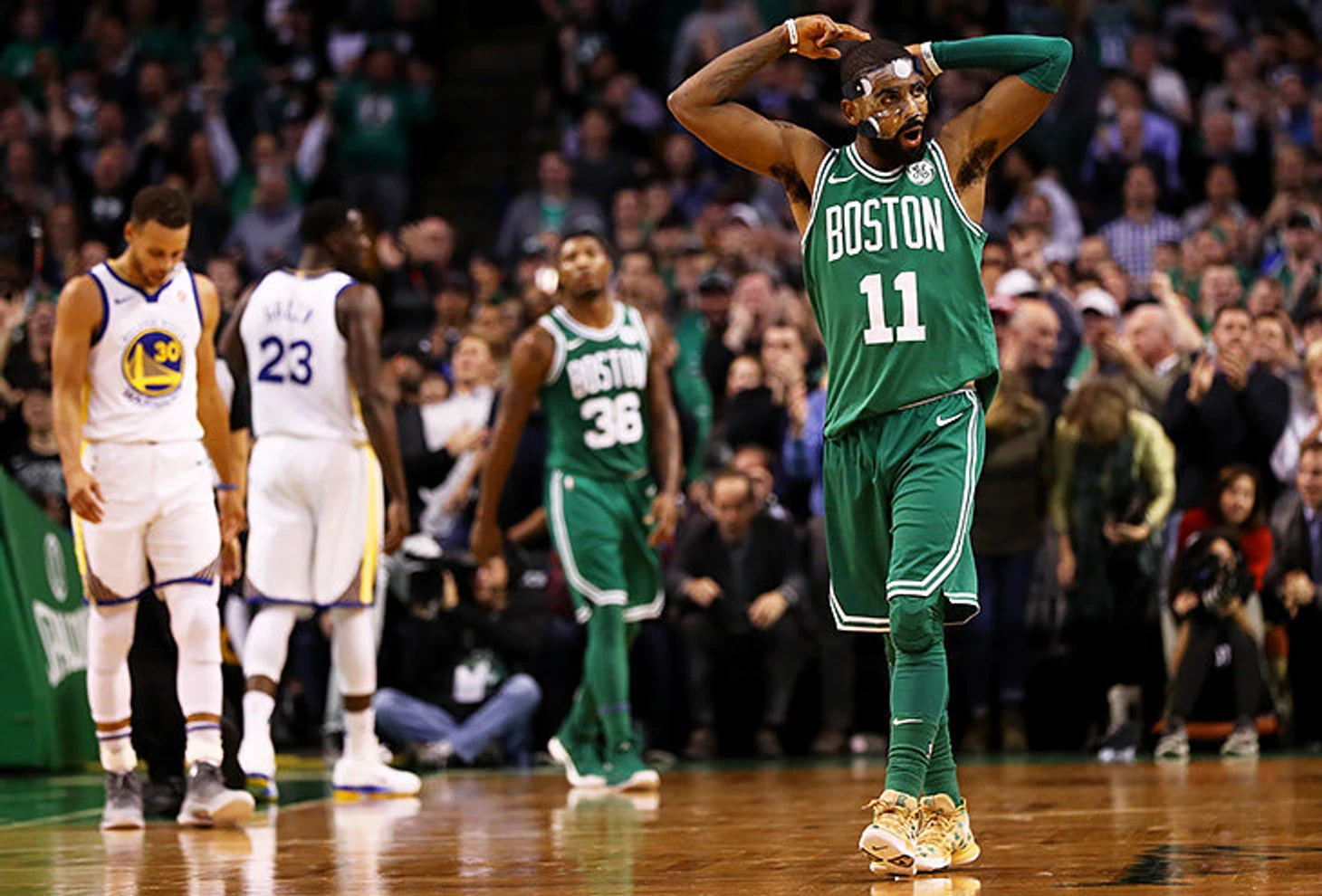 Ирвинг, Браун, Тейтум, Хорфорд, Розир и Моррис – все попадали больше 36% из-за дуги в минувшей «регулярке» (Кайри, Эл и Джейсон давали больше 40). У Хэйворда почти 37% по карьере и под 40 в последний год в «Юте». Пока «Уорриорс» молятся, чтобы Игудала и Дрэймонд попали хоть что-то, пока «Хьюстон» надеется, что Такер не будет мазать открытые броски на старте матча и заставит против себя защищаться, «Селтикс» просто выпускают 5 элитных шутеров сразу. Из нестабильных снайперов в ротации – Бэйнс да Смарт. Но для «Бостона» эти двое – просто дополнительные варианты. В то время как «Уорриорс» и «Рокетс» просто вынуждены выпускать игроков с проблемным броском.