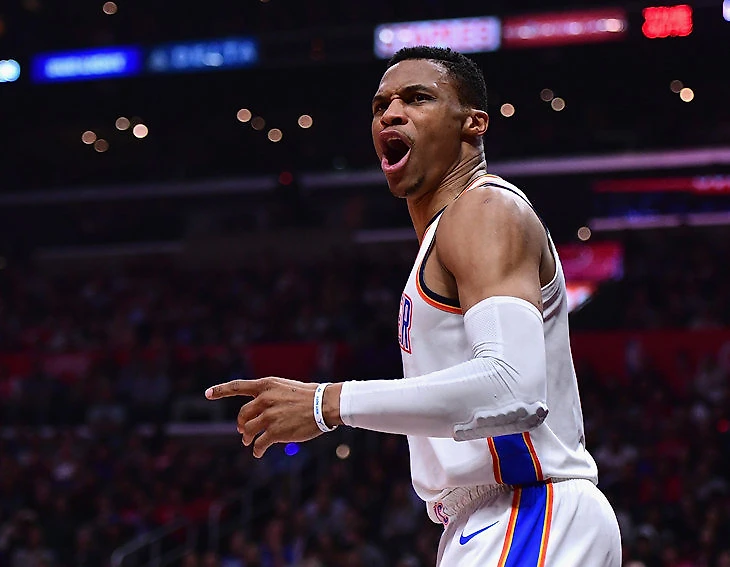 Он высоко прыгает, быстро бегает, ведет все нападение команды, много бросает, много отдает, много теряет. В удачный вечер Уэстбрук – это топовое зрелище. В нем есть животная страсть к игре, это практически осязаемо, и это вызывает симпатию. Он всегда прет на 100% и брызжет слюной. Расселл очень зрелищен.