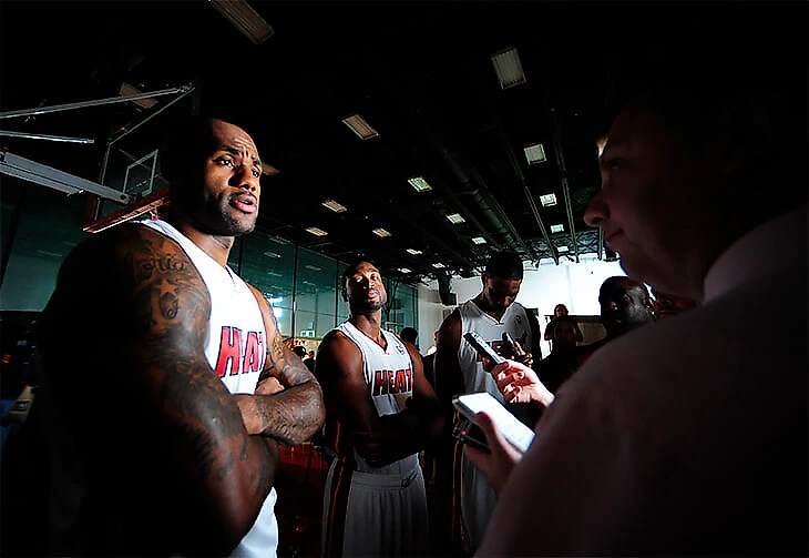Летом 2010-го Леброн переходит в «Хит», чтобы выиграть не один, не два и не три, а очень много чемпионских титулов. Вместе с Леброном контракты с «Майами» подписали Бош и Уэйд, сформировав «большое трио» суперзвезд в прайме. Многим было достаточно сложно переварить сам факт такого союза, ибо команда выглядела слишком сильной, чтобы проиграть. Но то, как это объединение было обставлено, выбесило вообще всех. Решение Джеймса, презентация «большого трио», обещание титулов – это воспринималось не как что-то по-спортивному наглое и даже не как что-то по-детски глупое. Расценивалось это как что-то вероломно неправильное.