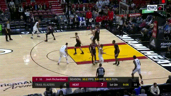 Что действительно пугает: большие «Портленда» любят бросать дальние двухочковые, даже если имеют небольшое сопротивление, а на атаку еще полно времени. Даже Юсуф Нуркич, который по обыкновению таранит все на пути к кольцу, делает непозволительное количество дальних попыток, застревая после постановки заслона, и только потом принимается за основную работу. Я знаю, что Зак Коллинс хорошо бросает, но будьте добры впредь исключить подобные эпизоды: