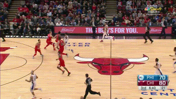 Никола Миротич и Бобби Портис получили бОльшую часть внимания общественности в связи с победным рывком «Чикаго» из семи побед – забавное «самосаботирование» слива сезона. Они заслужили это. (Не могу не отметить ДЭВИДА НВАБУ!) Миротич попадает из любых позиций, а Портис демонстрирует самый разносторонний баскетбол в своей карьере. Кто-то, по всей видимости, сообщил ему, что пасовать мяч разрешено правилами игры.