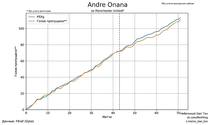 Андре Онана за «Манчестер Юнайтед». График PSxG.