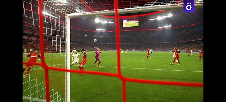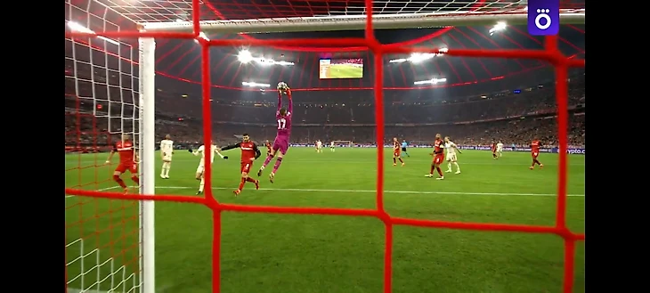 Это было третье в целом и второе достойное внимания спасение Алиссона, но дальше его ждала мясорубка. Очень интересно разобрать следующий момент: после удара Хвичи рикошет от защитника направил мяч вратарю в противоход, и здесь Беккер сыграл просто блестяще. Во время подшага перед ударом его спасло то, что он вовремя среагировал на рикошет и, не завершив этот подшаг, поставил ногу на землю. В результате данного маневра Алиссон пусть и оказался в не самой удобной очень широкой стойке, сохранил драгоценные доли секунды, чтобы успеть сложится и парировать этот удар. Удивительный уровень хладнокровия и владения собственным телом.