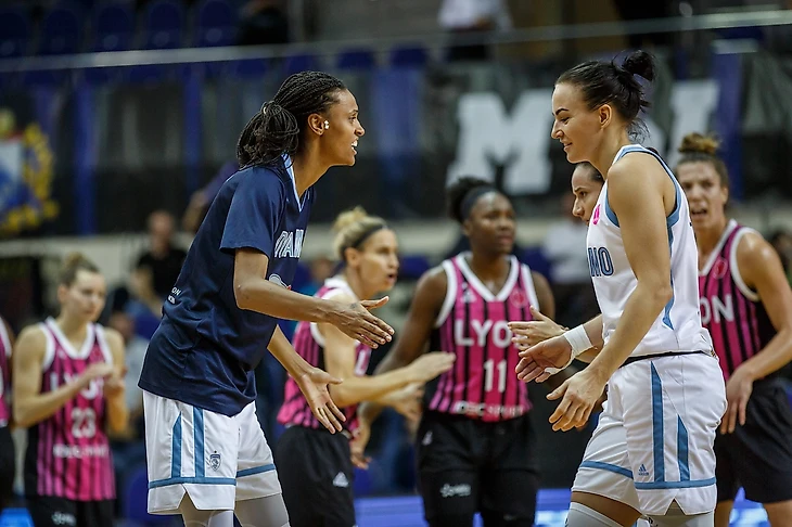 А пока «Лион» не может похвастаться стабильной игрой. Хорошие отрезки идут вперемешку с провалами. Игра в Курске началась с двух потерь. Принц и Боннер воспользовались ошибками соперниц, реализовав трёхочковые попытки. Но ещё в первом отрезке матча француженкам удалось справиться с волнением. После десяти минут табло показывало равный счёт: 17-17. А в следующей десятиминутке, благодаря активности канадки Плуфф, гости долгое время лидировали. Важным эпизодом возвращения в игру для курянок стал трёхочковый бросок Натальи Жедик. Защитник «Динамо» во время контратаки нашла себе свободное пространство, подняла руку, получила передачу и зарядилась порцией оваций от болельщиков.