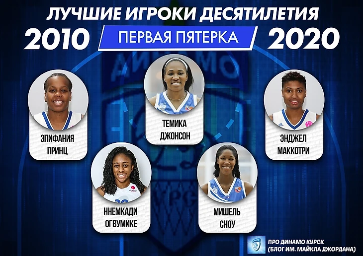 Динамо (Курск, 2010-2020): Джонсон, Принц, МакКотри, Огвумике, Сноу – старт, Круз, Огастус, Петрович, Стюарт, Вадеева, Бимбайте, Сиак.