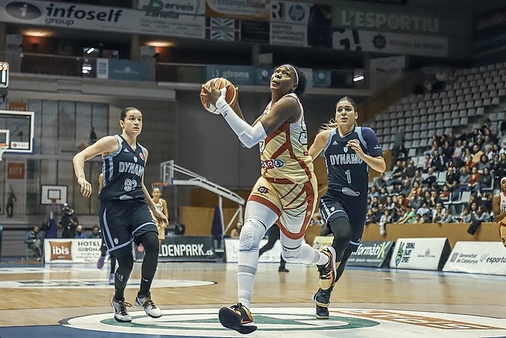 Испанская «Жирона» всегда считалась домашней командой. Не исключением стал и сезон 19/20. Все победы чемпион Испании, кроме последнего матча против «Монпелье», одержал на домашнем паркете. Курский клуб тоже не смог увезти из Жироны два очка. Не смотря на то, что испанки были лидерами практически весь матч, не покидало ощущение, что динамовки смогут прибавить в концовке и вытащить непростой матч. За пять минут до финальной сирены курянки сократили разницу до 9 очков. Но благодаря активным действиям Сайкс (23 очка) и мощной Кулибали (13 + 11 подборов) нервной концовке было отказано.