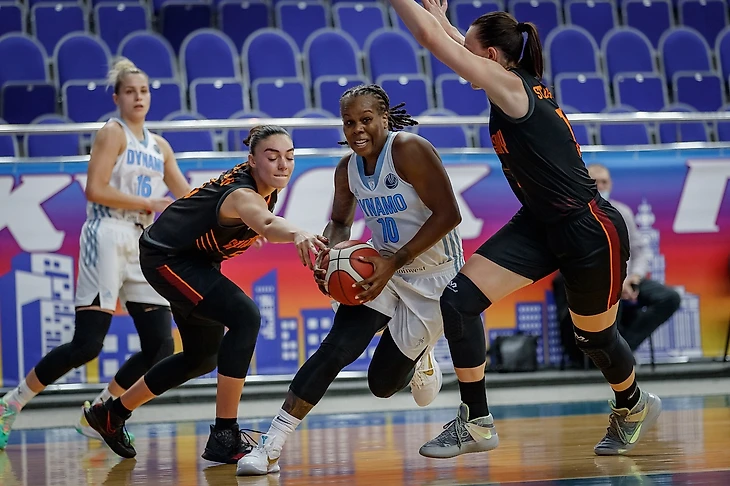 Игра 13 числа не задалась ещё до стартового свистка. Во-первых, команды поменялись сторонами. Принципиальный турецкий клуб отжал у «Динамо» домашнюю скамейку. Потом была заминка при вбрасывании. Ещё одна проблема – огромная Тина Краишник в «краске» соперника. «Галатасарай» повёл 4:0, 6:2. Первый отрезок в итоге остался за гостями – 22:20. Хозяйки паркета нервно провели дебют матча. Запомнились только два дальних броска. Первый трёхочковых в матче забросила Наташа Ховард. А для Аделины Абайбуровой точный бросок стал особенным. Это её первые очки в Евролиге. С почином!