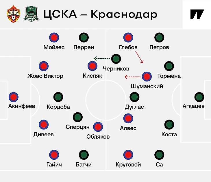 Ничья – закономерный итог. ЦСКА был осмысленнее в первом тайме за счет успешного прессинга и открываний Шуманского и Глебова, но затормозил в большинстве. «Краснодар» качественно перестроился после красной карточки Кордобы и дотерпел в концовке благодаря сэйвам Тормены и Агкацева.