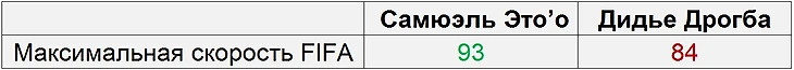 Убегал по бровке, прокидывая мяч мимо соперника. Моментально врывался в штрафную зону после розыгрыша с партнёром короткой комбинации. Был способен вырваться из окружения двух защитников, оббежать вратаря и положить резиновый снаряд в пустые ворота. Всё это про Самюэля Это’о, выносливость и скорость которого являлись одними из самых сильных его черт. Это подтверждают и разработчики FIFA. Пиковый показатель скорости камерунца в этом симуляторе равнялся 93 пунктам. Да, у Дрогба скорость тоже была отличной, но хуже.