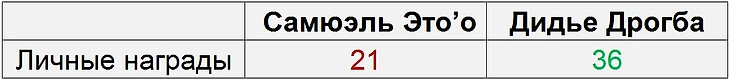 Самюэль Это’о и Дидье Дрогба выиграли одинаковое число трофеев – 18. Но не думайте, что в этом раунде я буду судить только за количество. Не останется в стороне и ценность этих титулов.