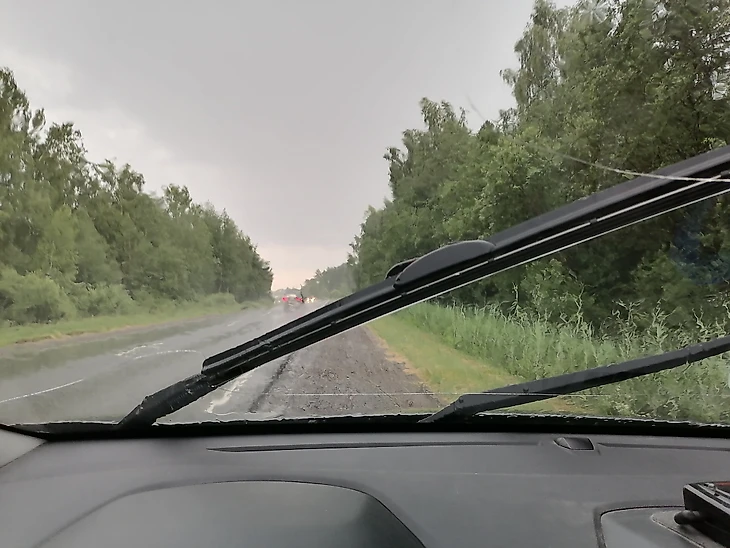 Начну рассказ с неудавшегося выезда в Гаврилов-Ям, что в Ярославской области. От Ярославля дорога займёт чуть больше полу часа. В планах было посетить матч первенства МФФ «Золотое кольцо» среди команд III дивизиона между командами Шинник-М Ярославль и Динамо-М (Киров). Выехав от работы на трассу М-8 в сторону Москвы полил дождь. Что нужно сделать в таком случае будучи за рулем? Правильно – включить дворники. Но проблема заключается в том, что дворники приказали долго жить и двигались по одному сантиметру в минуту. Постояв на обочине минут пять дождь начал уменьшаться. Я приободрился и поехал дальше, но тучи тоже пошли в сторону Гаврилов-Яма, прояснение сменилось тем же ливнем. Пришлось разворачиваться и на аварийке с включенными противотуманными фарами и ближним светом ехать в обратном направлении 😒.