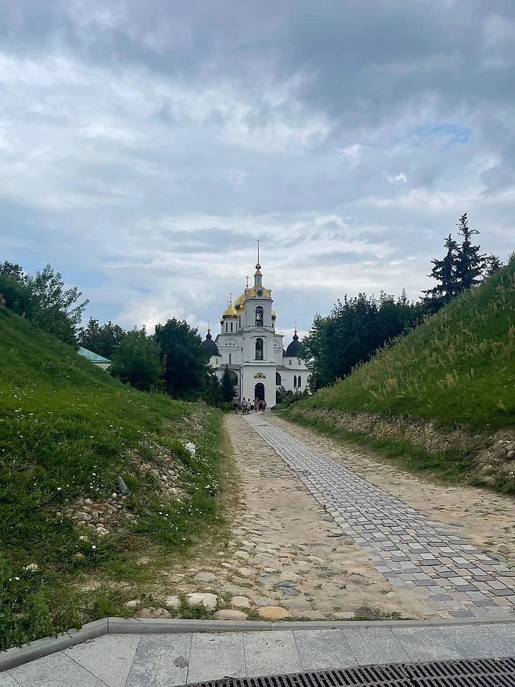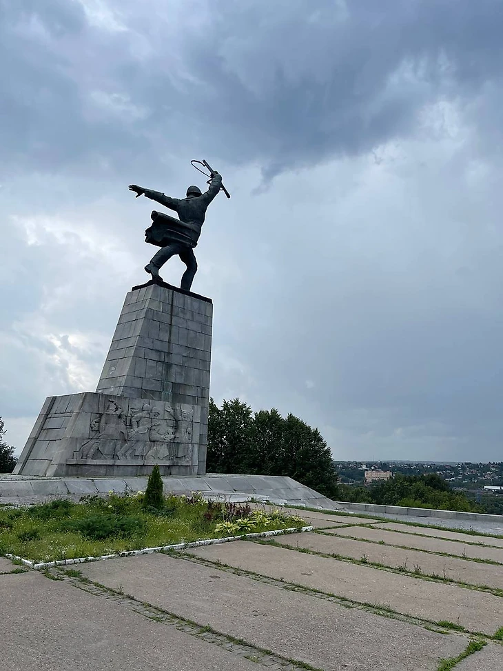 Обратно до Ярославля решено было проехать через Дмитров. На подъезде к городу издалека на возвышенности виднелся монумент.