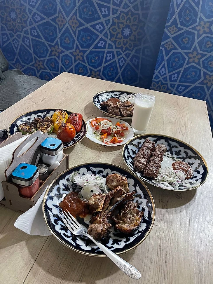 После футбола поехали заселяться в гостиницу Спектр, за свои три тысячи вполне неплохо, могу посоветовать. После дороги хотелось есть, подруга выбрала заведение с названием Киш-Миш, внутри эдакая столовка только с среднеазиатский колоритом. Еда вкуснейшая🍖🥗🍗, жалко, что пенное не наливают😥 По ценнику в районе 3000 за эту поляну.