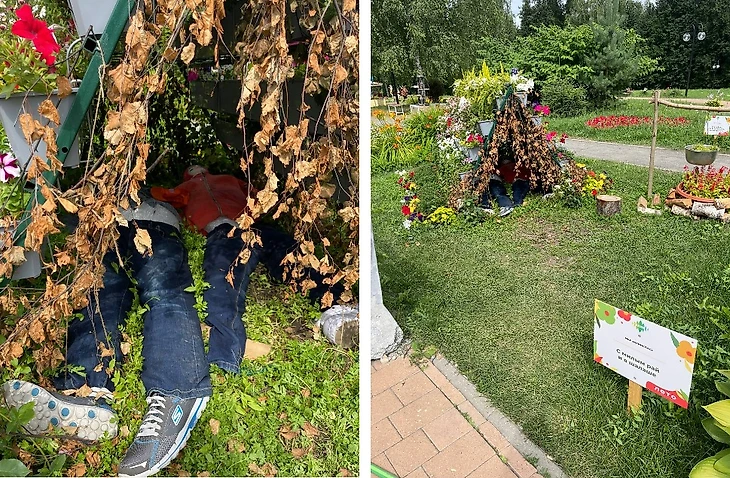 На следующий день отправились в Сестрорецкий парк. Парк неплохой, разделен водоемом на две части. По дороге на верх встретили такую «инсталляцию», очень кринжово. На ум приходит мелодия из заставки программы Криминальная Россия😁