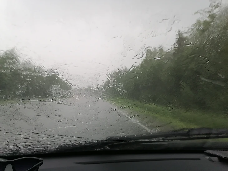 Проливной дождь, надеюсь, на футболе будет сухо⛈. Моментами съезжал на обочину переждать непогоду.