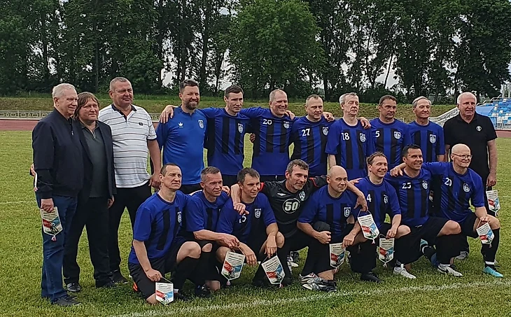 Предматчевое фото ярославцев🐻. Команду возглавляет, как полагается, Александр Михайлович Побегалов - легенда Шинника, Ярославля и вообще русского футбола👏.