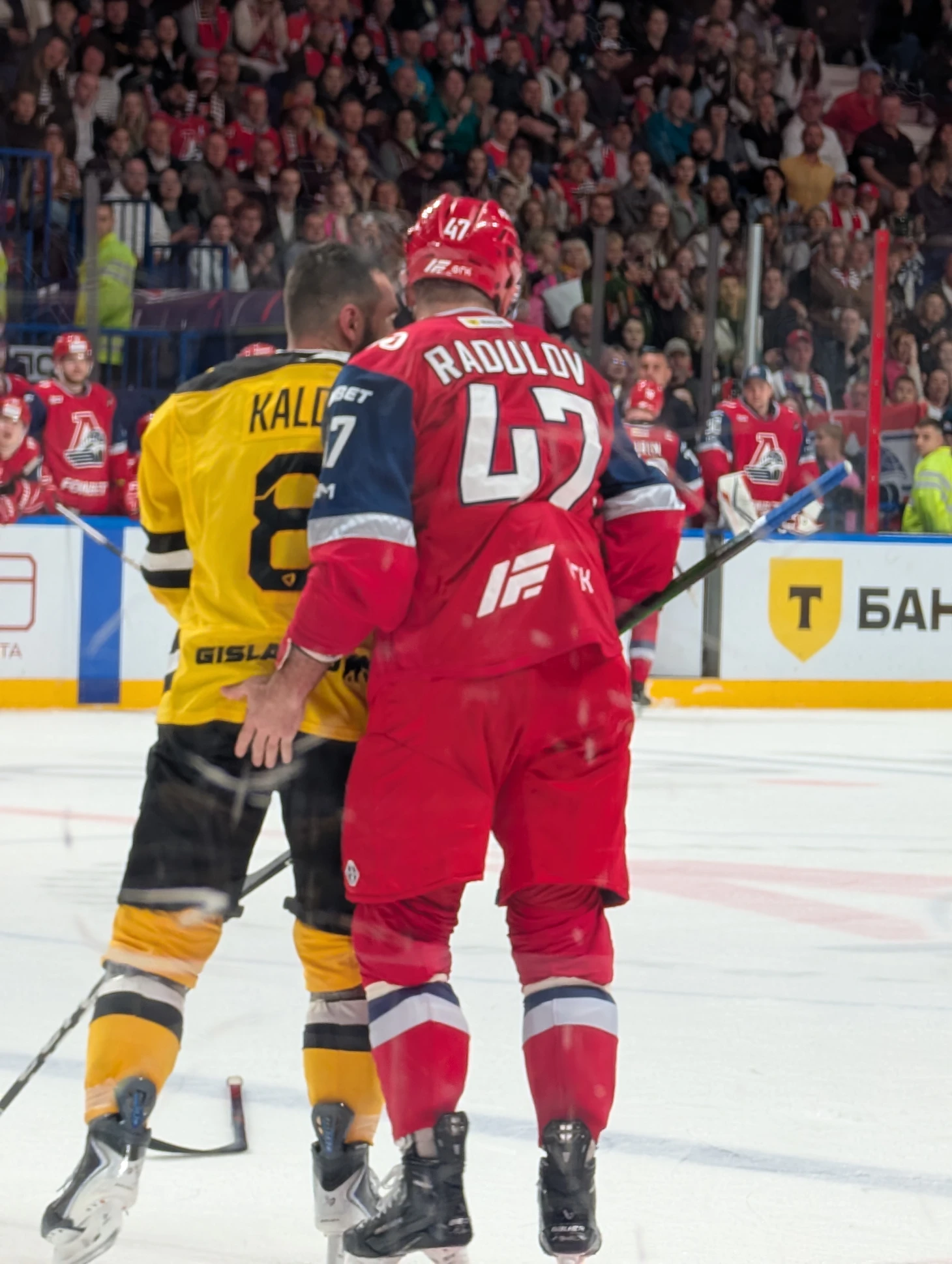 Когда игроки потолкались и стали расходиться, можно было наблюдать забавную картину, как Радулов провожает Иоанниса Калдиса😀😀