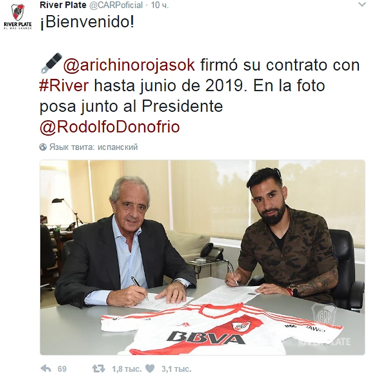 Из Мексики вернулся полузащитник Ариэль Рохас – контракт подписан на два года. Более того, на этом переговоры не заканчиваются. Существует вероятность появления воспитанника Бельграно – Эмилиано Ригони, который сейчас принадлежит Индепендиенте. (кстати говоря на Sports что-то напутано с его профайлом, потому что ему не 33 года а 24 – он 1993 года рождения). Причем как и в случаес Ауски, этот трансфер возможен только при условии перехода защитника Барбозы, который принадлежит Риверу, но на правах аренды играет за Дефенсу. Переговоры осложняет нежелание красных расставаться с Эмилиано.