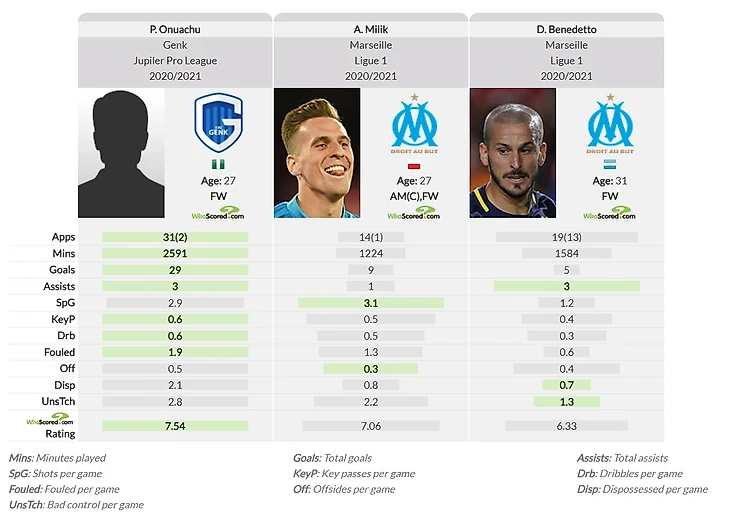 Хорхе Сампаоли использует схему с двумя форвардами. В этом сезоне из доступных игроков его лучшими вариантами были Аркадиуш Милик и Дарио Бенедетто. По статистике Пол Онуачу провёл сезон лучше обоих нападающих Марселя. Но, поляк был в французском клубе на правах аренды, так что усиление в нападение стоит ожидать.
