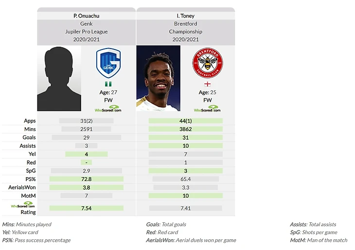 В клубе уже есть один хороший форвард - Айвен Тоуни. Он стал открытием нынешнего сезон Чемпионшипа, став лучшим бомбардиром лиги. В последних матчах сезона главный тренер Брентфорда Томас Франк использовал тактику с двумя нападающими, которая как раз подойдет для такой забивной пары нападающих. Что касается показатель, то статистика обоих нападающих примерно одинаковая, оба являются забивными форвардами, которые хорошо играют в верховых единоборствах. Если Айвен никуда не уйдет этим летом, то при подписании Пола Онуачи, может получится хороший дуэт.