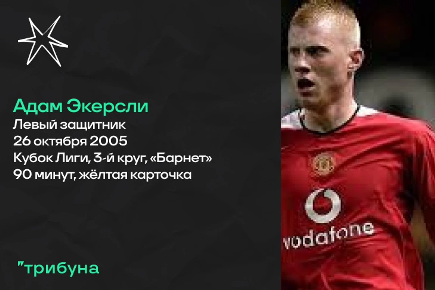 На очереди еще один воспитанник клуба. Адам дебютировал в матче Кубка Лиги против «Барнета» (в той же игре, к примеру, в основе вышли Жерар Пике и Джузеппе Росси, а голом отметился Сильвен Эбанкс-Блейк). После этого Экерсли, как и многие молодые игроки «дьяволов» в ту пору, съездил в бельгийский «Антверпен». Потом были еще «Брондбю», «Барнсли» и «Порт Вейл», а в 2007 году англичанин покинул «Юнайтед». Защитник выступал на уровне первой и второй лиг Дании за «Хорсенс» и «Орхус», играл за шотландские «Харт», «Хиберниан», «Сент-Миррен» и другие коллективы. Карьеру бывший футболист «Манчестер Юнайтед» завершил в 2020 году. Сейчас Адаму тридцать девять лет.