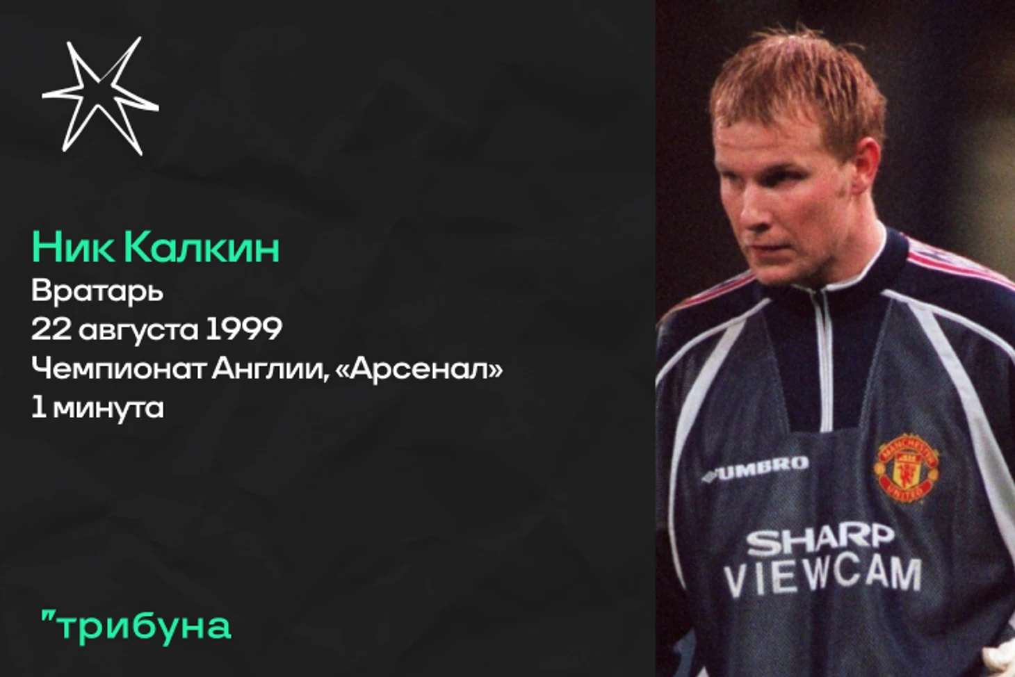 Ну и завершим подборку самым необычным случаем из всех представленных сегодня. Ник Калкин, являющийся еще одним воспитанником «Манчестер Юнайтед», дебютировал за основной состав клуба в компенсированное время к матчу с «Арсеналом» в 1999 году. Тогда вратарь клуба Раймонд Ван Дер Гау получил травму после столкновения с соперником, а доиграть оставалось совсем чуть-чуть. После выхода на поле, Калкин успел только нанести удар по мячу, дабы ввести его в игру. Далее был финальный свисток. Таким образом, карьера Ник в АПЛ продлилась около одной секунды, что можно считать рекордом. Затем он выступал за «Бристоль Роверс» и «КПР» в Англии, а также «Ливингстон» в Шотландии. Еще нужно отметить, что под конец карьеры Ник заезжал в «Юнайтед оф Манчестер», став первым игроком, кто выходил на поле и за этот фанатский клуб, и за основной «МЮ». Ушел из спорта он в 2018 году. Сейчас экс-вратарю сорок шесть лет.