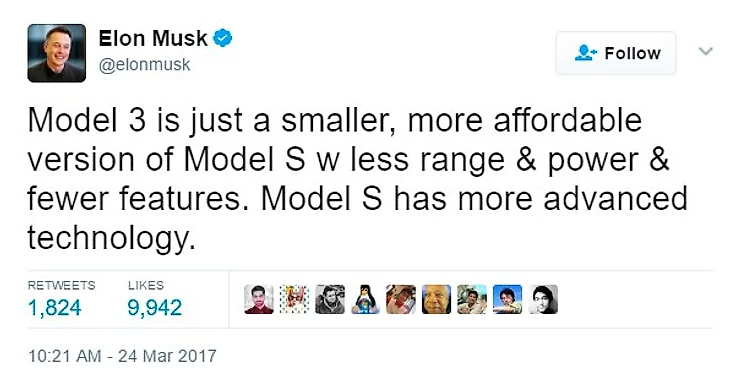 Вы можете подумать, что я сгущаю краски, но посмотрите, каким сюрпризом стало для Tesla то, что Model 3 массово начали воспринимать, как более совершенную версию Model S и Model X. Хотя, как мне тоже казалось, надо было быть в полной отключке, чтобы упустить, что Model 3 - это бюджетная модель от Tesla. И теперь Илон Маск при каждом удобном случае вынужден повторять, что Model 3 - это бюджетная версия, что нужно продолжать покупать Model S и Model X.