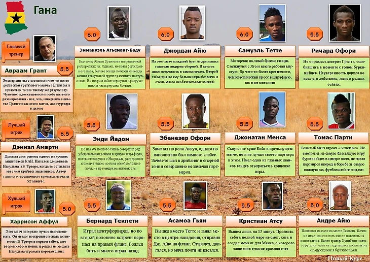 Гана: Р. Офори, Аффул, Менса, Амарти, Йадом, Агьеманг-Баду, Парти, Э. Офори, Дж. Айю (Атсу, 75), Текпети (А. Айю, 70), Тетте (Гьян, 65).