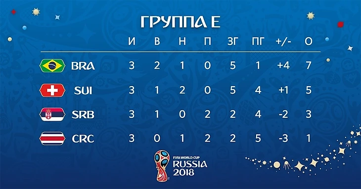 Ко всеобщей неожиданности, мы увидим в 1/8 финала противостояние команд из стран с созвучными для русского уха названиями, где швейцарцы постараются взять реванш за соотечественников-хоккеистов. Мексике, видимо, снова предстоит покинуть турнир после четырёх матчей - Бразилия кажется одной из самых основательных команд на турнире. Главное событие дня, безусловно, провал немцев, продолжающих традицию чемпионов мира по невыходу из группы на следующем мундиале. Корейцы завершили чемпионат на высокой ноте, сербы выступили достойно, как и костариканцы, сохранившие лицо и идеи, но пострадавшие от старения основного костяка и наличия в группе стилистически неудобных соперников.